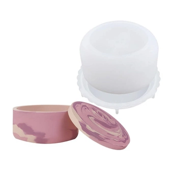 Forma silikonowa do gipsu z pokrywką okrągły pojemnik dekoracyjny na świece biżuterię GH-FS297