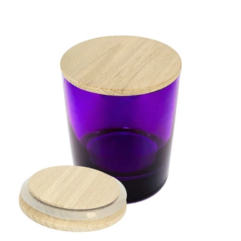 Szklany pojemnik do świec wraz z drewnianą pokrywką z uszczelką, fioletowy 300 ml