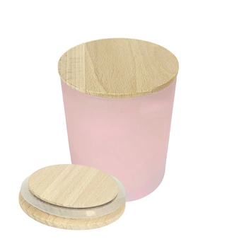 Szklany pojemnik do świec wraz z drewnianą pokrywką z uszczelką, różowy mat 300 ml