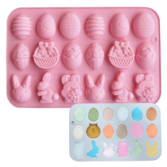 Profesjonalna forma silikonowa WIELKANOCNA dzieli się na 18 porcji odlewów. Idealny zestaw dla osób rozpoczynających przygodę z domowymi kosmetykami. Forma ta nadaje się do wielokrotnego użycia, jest lekka i trwała. Silikon użyty przy produkcji tej formy jest giętki i elastyczny, dzięki czemu mydełka bardzo łatwo wychodzą. Nie musisz się męczyć z wyciągnięciem mydełka jak w przypadku form plastikowych. Nasza forma jest łatwa w utrzymaniu – można myć w zmywarce. Dzięki dużej formie, w szybkim czasie możesz zrobić kilka mydełek glicerynowych za jednym zamachem. Roztop większą ilość bazy mydlanej, wlej ją do formy i gotowe! Oszczędność czasu i wydajność – to się opłaca! Formę można wykorzystać do świec jako element do położenia na tafli albo wosk zapachowy