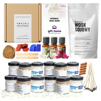 - Zestaw gotowych produktów potrzebnych do produkcji świec sojowych, to doskonała propozycja dla osób początkujących.