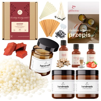 - Zestaw gotowych produktów, potrzebnych do produkcji świec sojowych, to doskonała propozycja dla osób początkujących.