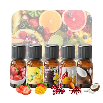 Kompletny zestaw 5x10g zawierający najbardziej popularne owocowe olejki zapachowe do mydła glicerynowego: